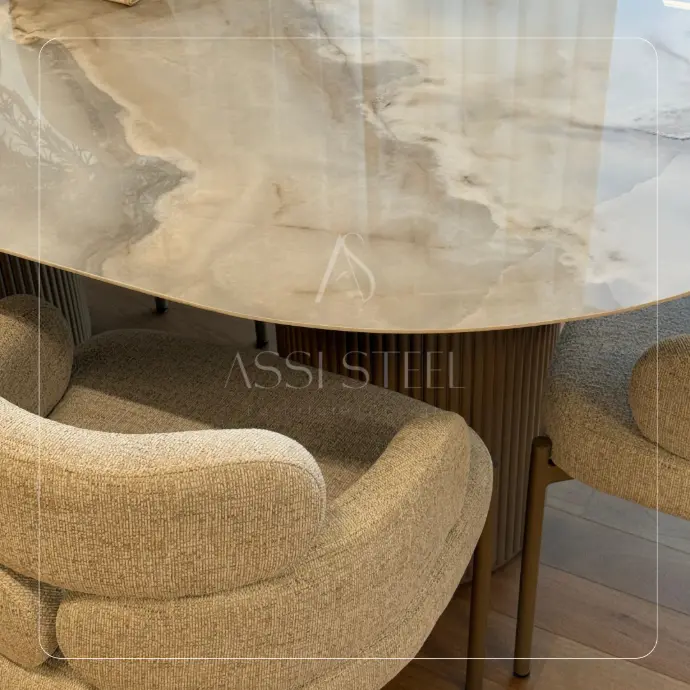 You can also choose from a variety of stunning porcelain tops, wood finishes, and metal colors to elevate your dining and coffee tables.